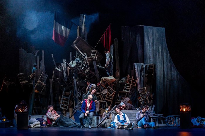 l'amour tragique (lames d'épée qui évoquent les duels et fleurs rouges du sang répandu.